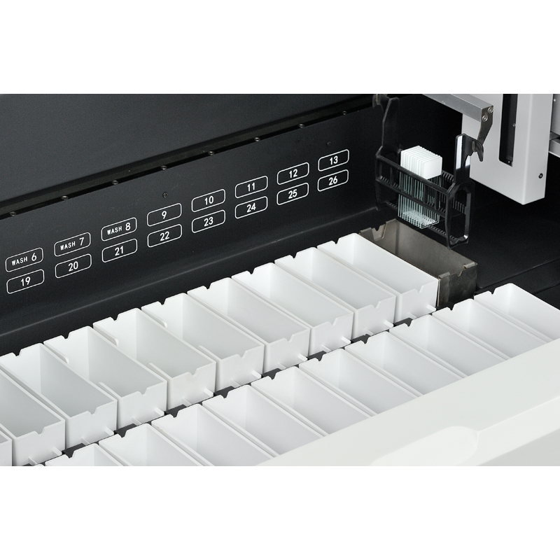 总站点数26个,(含试剂站点17个,水洗站点4个,烤缸1个,加载/卸载站点≥4个(智能配置,其中2个缸可设置为试剂缸)